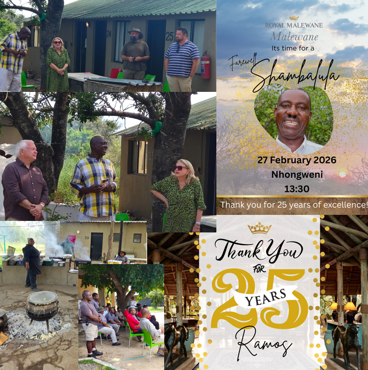 The property also marked the retirement of Ramos Malapane (Junior Duty Manager) after 25 years of dedicated service, a significant milestone that speaks to the loyalty and strong culture within the team. His contribution over more than two decades has formed part of the fabric of the lodge, and his departure marks the end of an important chapter.